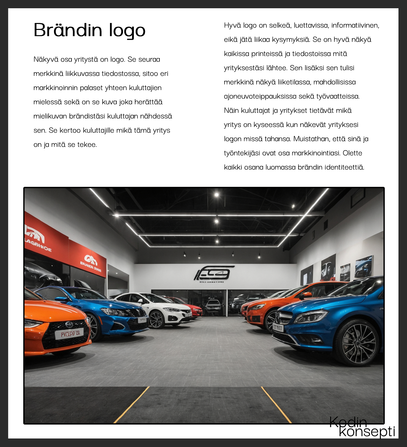 Tässä oppaassa keskitymme brändin esiintuomiseen liiketilassa ja sivuamme samalla miten muuten brändi näkyy yrityksen muilla osa-alueilla. Käytämme yhtenä lähestymistapana aiheeseen markkinointimixiä. Toiselta nimeltään 7P-mallia. Aiheina mm. brändin logo, logo liiketilassa sekä brändin sanoma, värit ja koti.