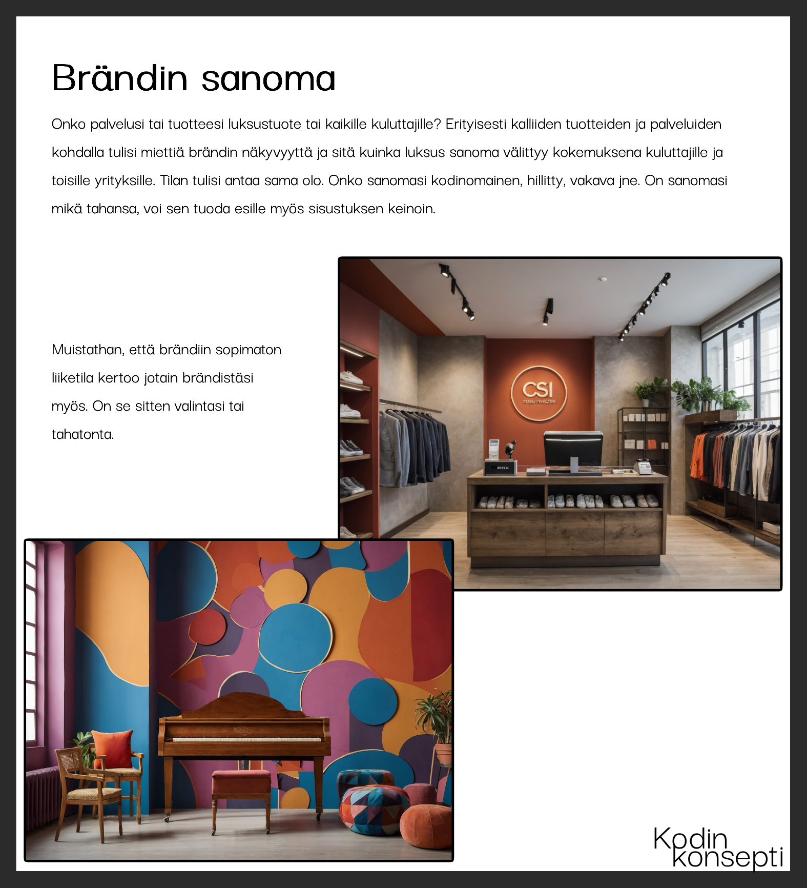 Tässä oppaassa keskitymme brändin esiintuomiseen liiketilassa ja sivuamme samalla miten muuten brändi näkyy yrityksen muilla osa-alueilla.